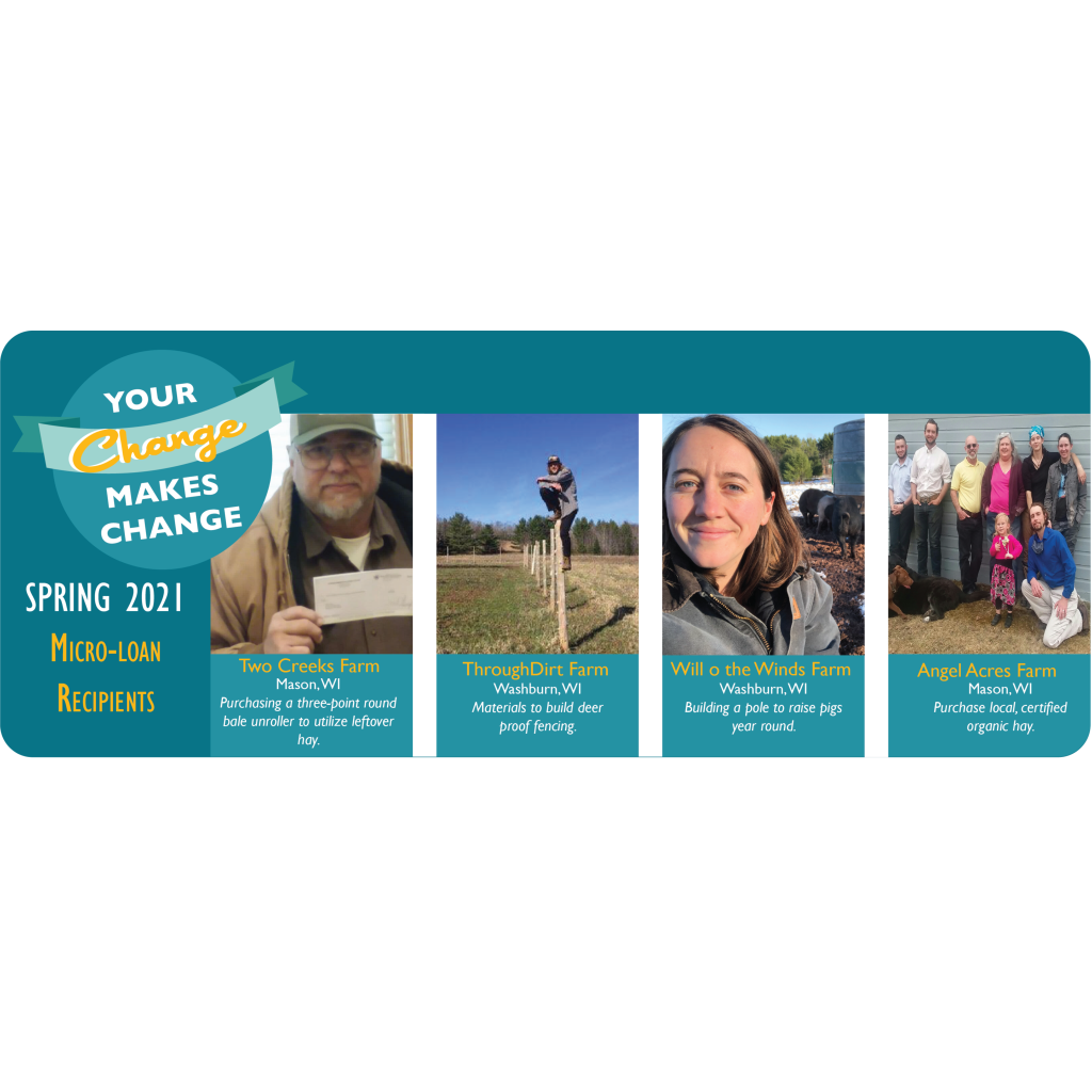 Five local producers received micro-loans totaling $15,200 from the Chequamegon Food Co-op to help with farm projects through the winter and into spring. Micro-loan recipients for the Fall 2021 loan cycle are as follows: